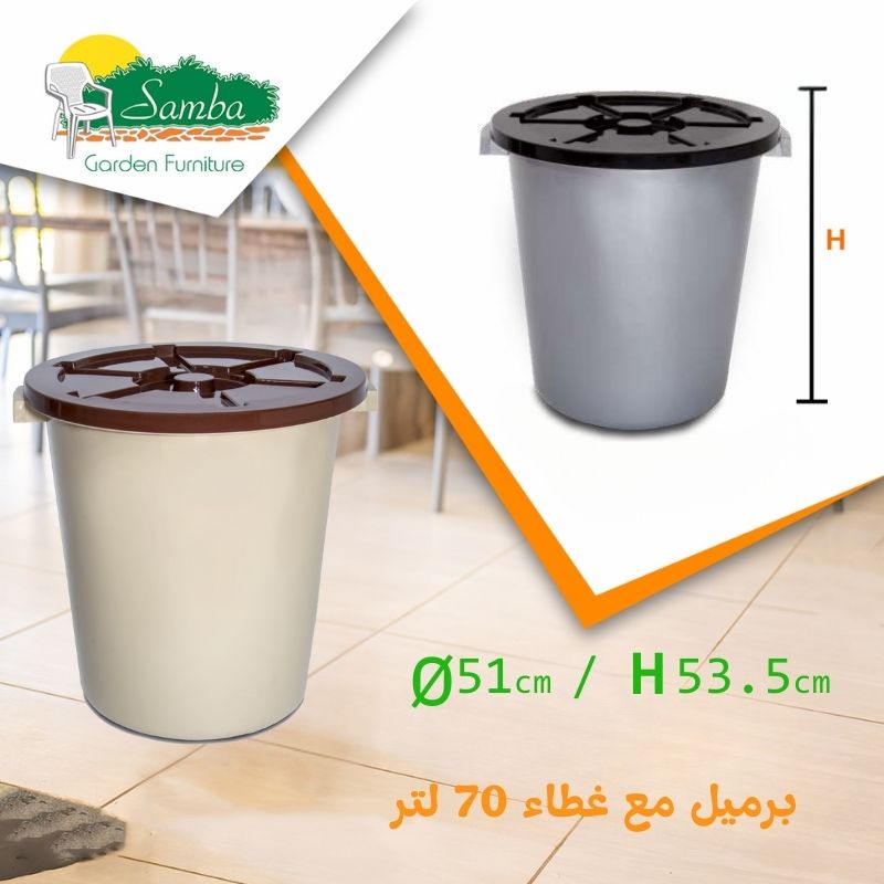 برميل نفايات عملي ومتين من سامبا، مصنوع من البلاستيك عالي الجودة، مثالي للاستخدام في المنزل أو المكتب أو أي مكان عام. يتميز بغطاء محكم الإغلاق يحافظ على النظافة ويمنع انتشار الروائح الكريهة، وتصميم عصري يتناسب مع مختلف الديكورات.