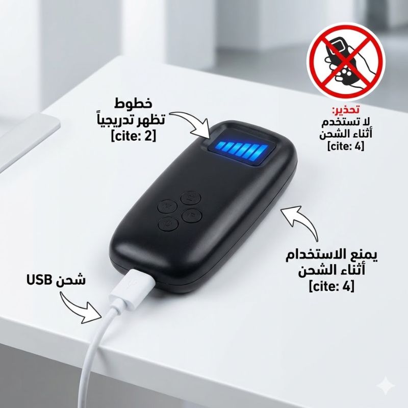 3. الشحن: اشحني عبر USB (تظهر خطوط الشحن تدريجياً).