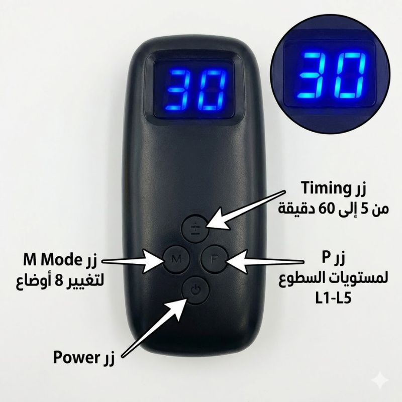 - ⏳ زر Timing: مؤقت من 5 إلى 60 دقيقة.